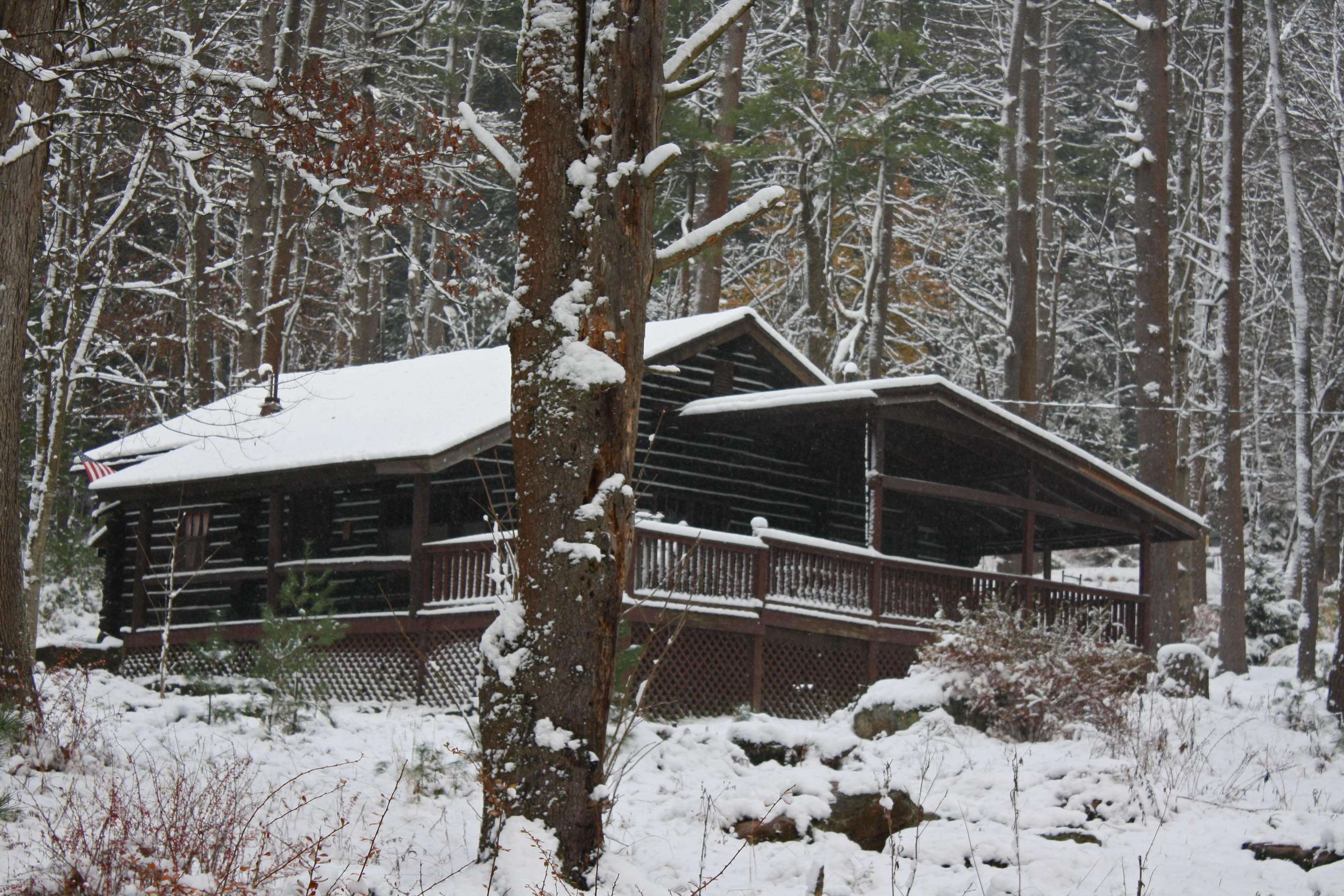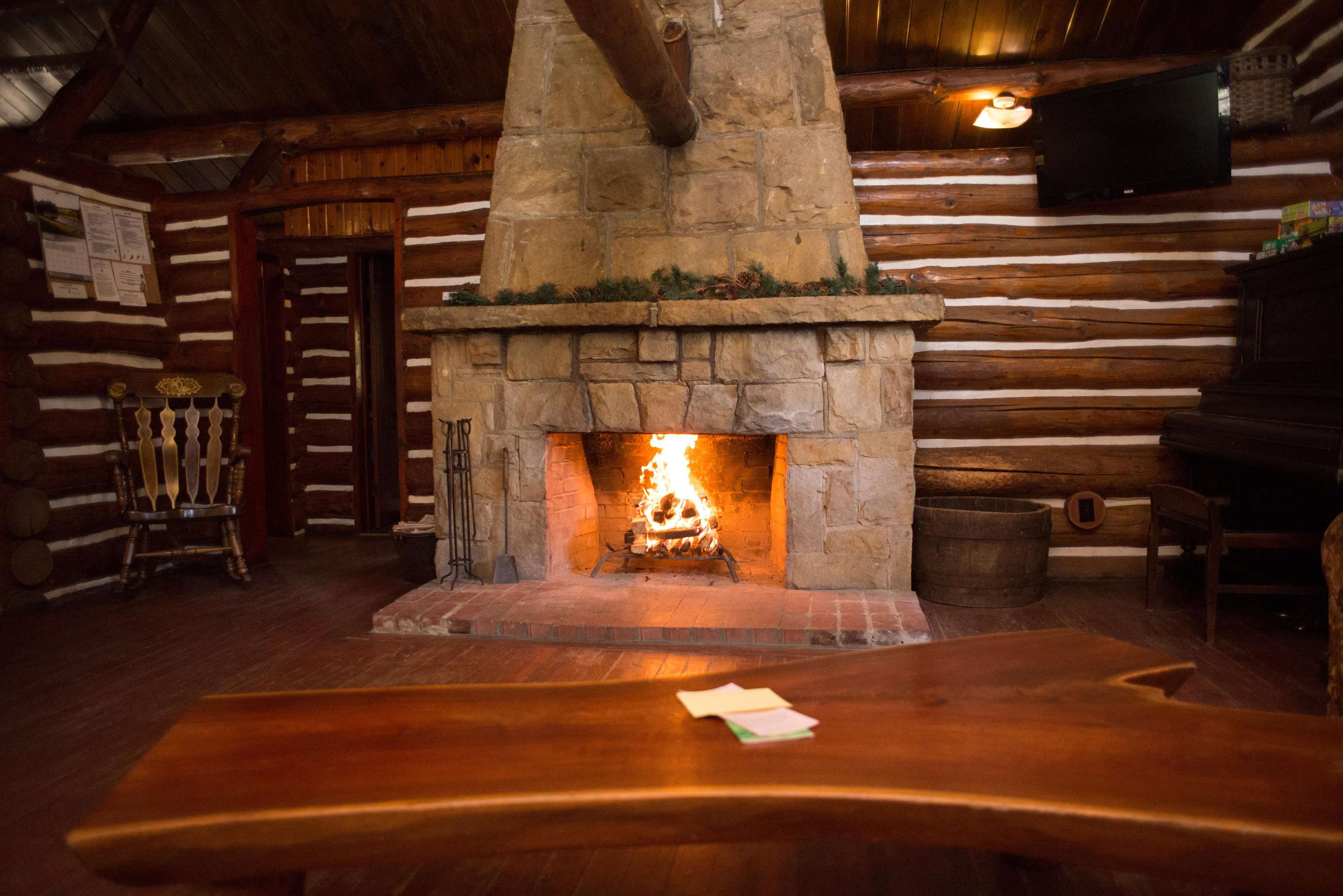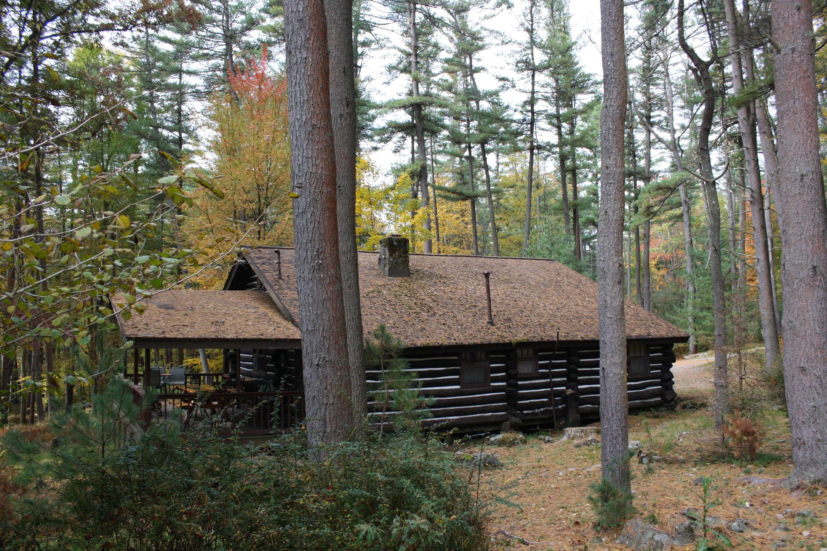 Cabin 16 is a spacious hand-hewn log cabin with a gorgeous stone fireplace, kitchen and bath. This two-bedroom cabin has plenty of room for up to eight guests. Cabin 16 has a large covered front porch with a deck that wraps around the side, picnic table, charcoal grill, and fire ring. It sleeps a maximum of 8 guests. From the first weekend in June through the last weekend of August, Cabin 16 is a Sunday-to-Sunday weekly rental. We require a 3-night minimum rental on Memorial and Labor Day weekends and only a 2-night minimum at other times.