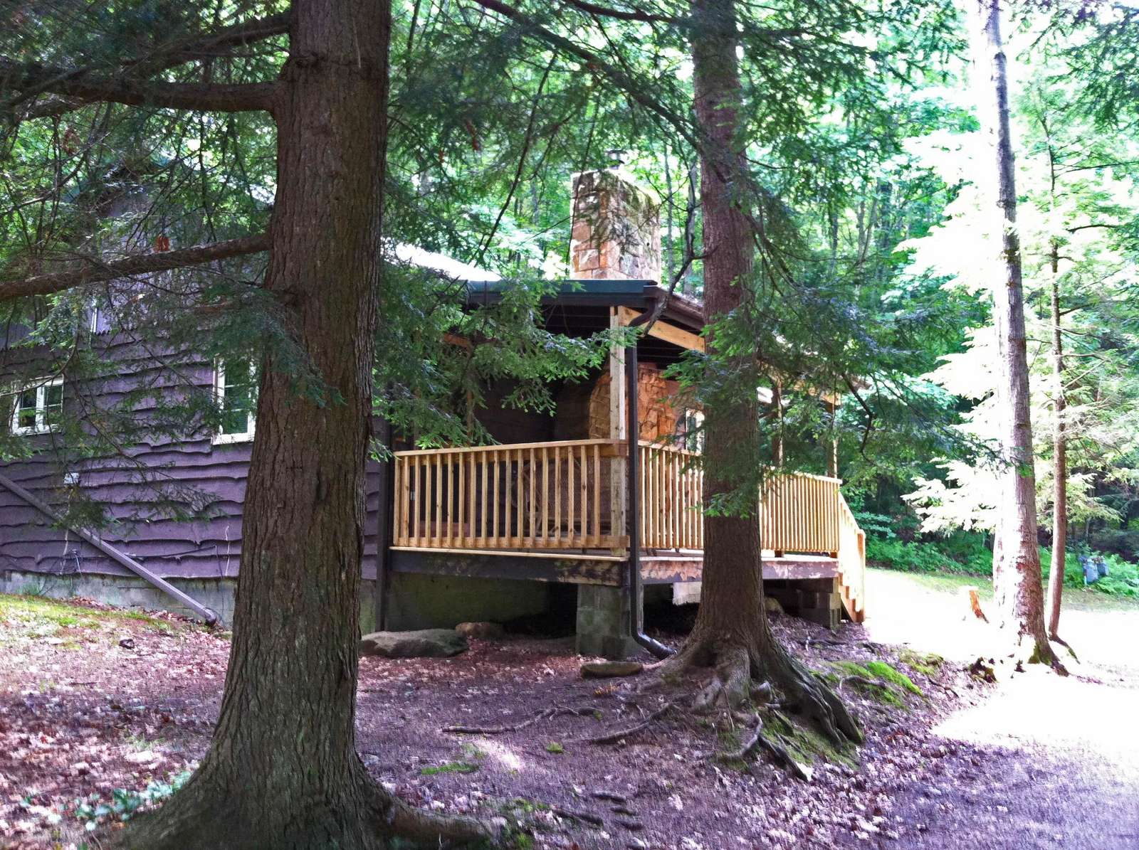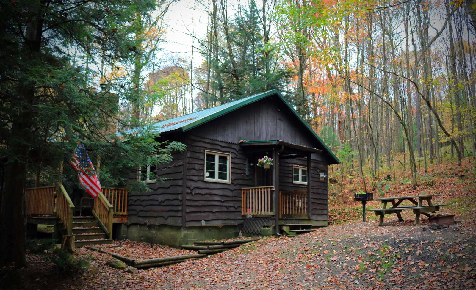 Whispering Oaks is located at 2295 Route 36, Leeper, PA 16233 just 2.5 north of the Clarion River bordering the northern edge of Cook Forest. Maximum guests allowed include children & infants. All cabins have gas or electric heat and come with a starter supply of firewood. Bed linens, dishware & utensils, pots & pans, microwave, coffee maker, toaster, and TV with DVD player only are provided. All of our cabins have bathrooms. WiFi is available but not guaranteed due to frequent outages in the area. Guests receive a discount at the Pale Whale Canoe Fleet (transports and 6-person river rafts excluded) conditions permitting. Pet friendly!